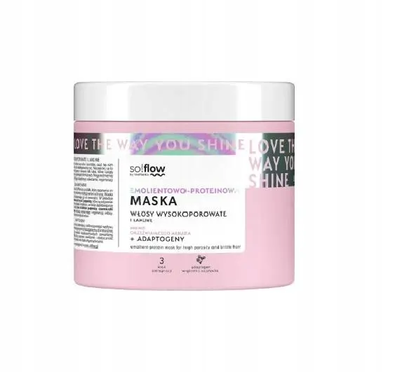 Maska do włosów so!flow by Vis Plantis to produkt, który zapewnia im odpowiednią regenerację, nawilżenie, uelastycznienie i ochronę. Maska wnika w strukturę włosa, odbudowując go od wewnątrz. W składzie znalazły się hydrolizowane proteiny soi i pszenicy, które są odpowiedzialne za nadanie włosom połysku i miękkości, a także zapobieganie ich elektryzowaniu. Zawartość olei z kiełków pszenicy, czarnuszki oraz siemienia lnianego nawilżają, wzmacniają i regenerują włosy. Pantenol wzmacnia barierę ochronną łuski włosa.