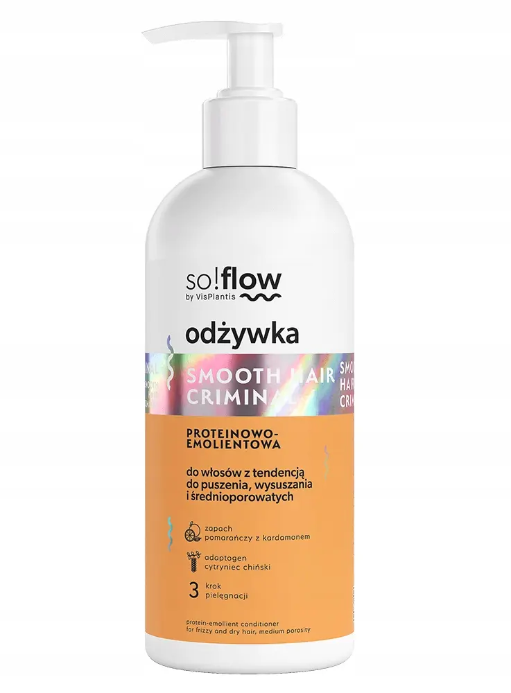 Podaruj Twoim włosom prawdziwe flow z odżywką proteinowo-emolientową so!flow, która zadba o zdrowy i piękny wygląd kosmyków. Zawarta w odżywce wegańska keratyna wypełni ubytki włosów, wzmocni je i wygładzi, a oleje arganowy i babassu uelastycznią, zmiękczą i nawilżą, nadając włosom zdrowego blasku. Dodatek adaptogenu cytryńca chińskiego i soczysty zapach pomarańczy z kardamonem skutecznie wprawi w lepszy nastrój. Odżywka doskonale sprawdzi się do włosów średnioporowatych.