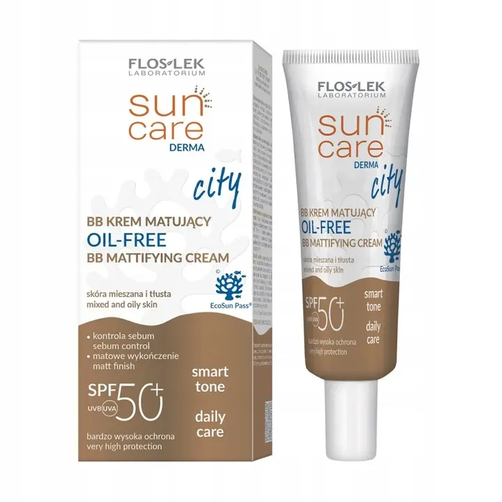 Sun Care Derma CITY BB Oil-Free Krem matujący SPF 50+ to lekki, wodoodporny krem kryjący do skóry tłustej i mieszanej, zapewniający równocześnie bardzo wysoką ochronę przed szkodliwym promieniowaniem UV.