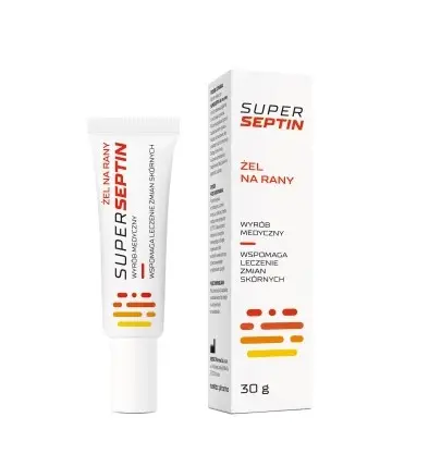 Superseptin żel na rany to wyrób medyczny wspomagający w leczeniu niezakażonych zmian skórnych, powierzchniowych ran od otarć, ran ciętych, ran chirurgicznych, oparzeń, a także owrzodzeń naczyniowych (podudzi), owrzodzeń cukrzycowych, odleżyn i podrażnionej skóry po radioterapii. Specjalna formuła żelu, dzięki jego właściwościom bioadhezyjnym, zapewnia długotrwały kontakt głównych składników w miejscu aplikacji.