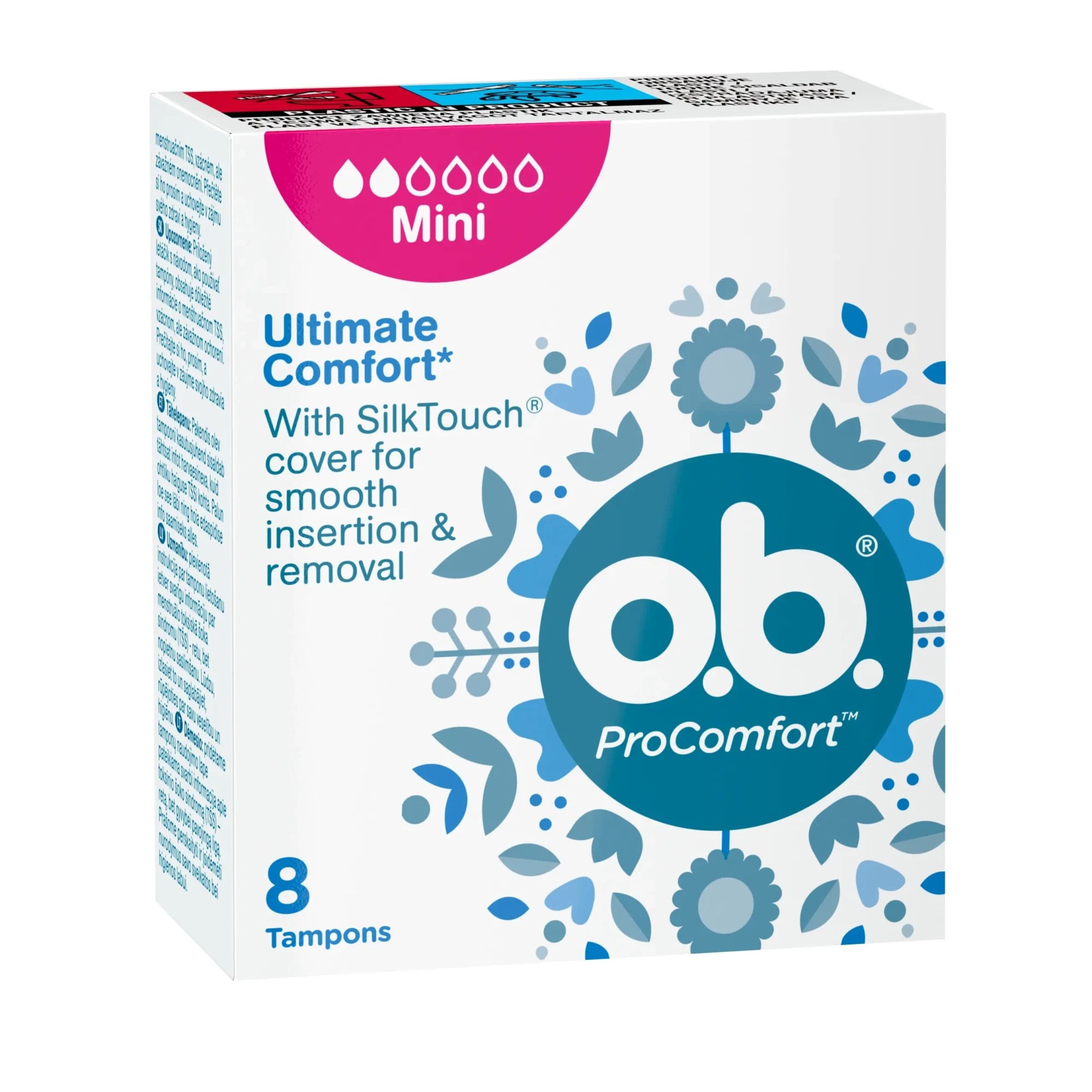 Tampon o.b. ProComfort zapewnia łatwość aplikacji i usuwania. Tampony o.b. ProComfort o chłonności Mini są szczególnie zalecane na początku okresu, w dniach o mniejszym krwawieniu i u większości młodych kobiet, które mają niezbyt obfite miesiączki. Jeśli dopiero zaczynasz stosować tampony, o.b. ProComfort Mini są dla Ciebie najlepsze ze względu na łatwość użycia. Są małe, smukłe, a w dotyku jedwabiście gładkie dzięki otoczce SilkTouch. Mają też wyprofilowane zakończenie.