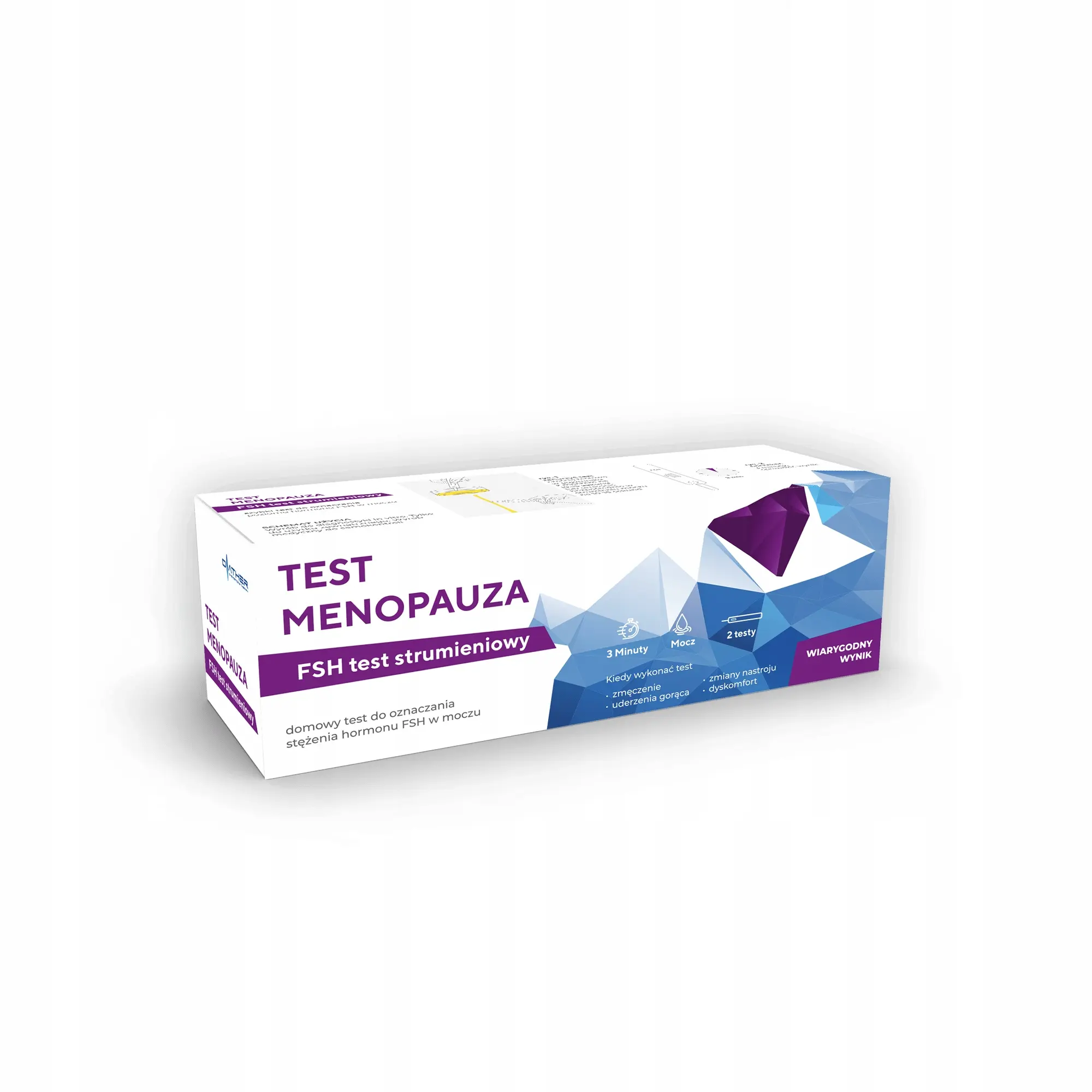 Szybki test paskowy do jakościowego wykrywania w moczu hormonu FSH o stężeniu 25 mlU/ml lub wyższym. Zasada działania testu opiera się na swoistej reakcji immunochemicznej antygen – przeciwciało. Naniesione w procesie produkcji na pasek testowy przeciwciała anty – FSH reagują z hormonem FSH obecnym w moczu.