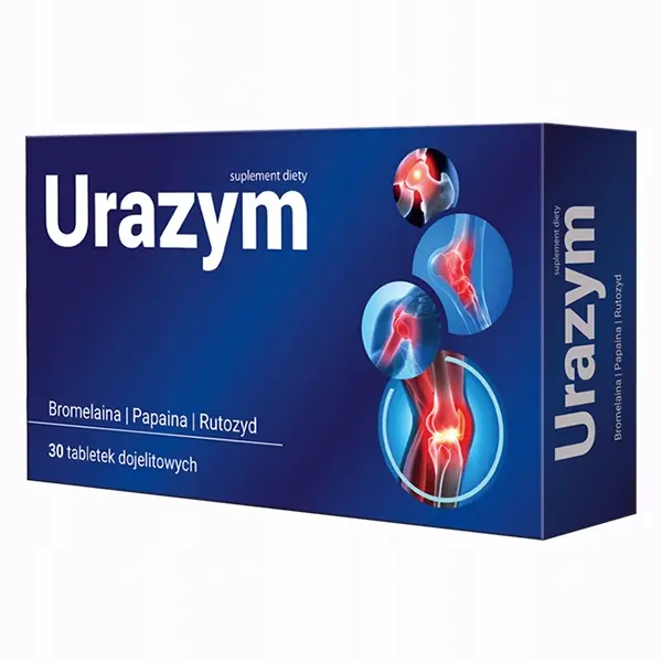 Urazym to preparat, który uzupełnia codzienną dietę w składniki pochodzenia naturalnego: bromelainę, papainę i rutozyd, wykazujące wielokierunkową aktywność biologiczną. Bromelaina i papaina to enzymy roślinne o szerokim spektrum aktywności proteolitycznej, które uczestniczą w hydrolizie wiązań peptydowych białek. Rutozyd zaliczany jest z kolei do flawonoidów - naturalnych związków polifenolowych, których głównym źródłem są rośliny, m.in. warzywa, owoce oraz zboża.