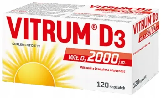 Suplement diety Vitrum D3 2000 j.m. to wysokiej jakości suplement diety zawierający 2000 jednostek witaminy D3, wspierający prawidłowe funkcjonowanie układu odpornościowego, zdrowie kości i zębów. Preparat jest szczególnie polecany osobom z niedoborami witaminy D, zwłaszcza w okresach ograniczonej ekspozycji na słońce. Dzięki precyzyjnie dobranej dawce, Vitrum D3 2000 pomaga utrzymać optymalny poziom witaminy D w organizmie, co wpływa na ogólne zdrowie i samopoczucie. Kapsułki wypełnione są olejem z krokosza barwierskiego, dzięki temu preparat można przyjmować niezależnie od posiłku. Krokosz barwierski wpływa na lepszą przyswajalność witaminy D.