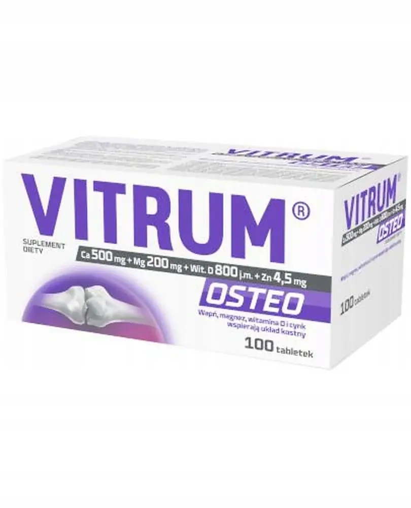 Vitrum Osteo to suplement diety w postaci tabletek, który w swoim składzie zawiera wapń, magnez, witaminę D oraz cynk. Preparat przeznaczony jest dla osób dorosłych.