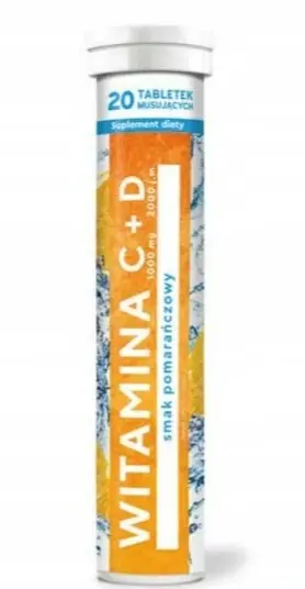 MBM Pharma Witamina C + D3 1000 mg + 2000 j.m. – Musująca o Smaku Pomarańczowym – 20 tabletek