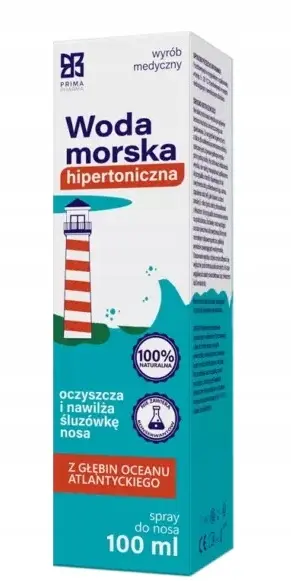 WODA MORSKA HIPERTONICZNA to hipertoniczny, naturalny preparat w formie sprayu do nosa. Oparty jest na wodzie morskiej pochodzącej z głębin Oceanu Atlantyckiego, bogatej w minerały i mikroelementy. Stosuje się go do łagodzenia objawów spowodowanych niedrożnością nosa i zatok. Wyrób oczyszcza jamę nosową i zatoki, udrażnia nos. Można go stosować pomocniczo w czasie kataru siennego, przebiegu alergii, zapaleniu zatok i infekcjach.